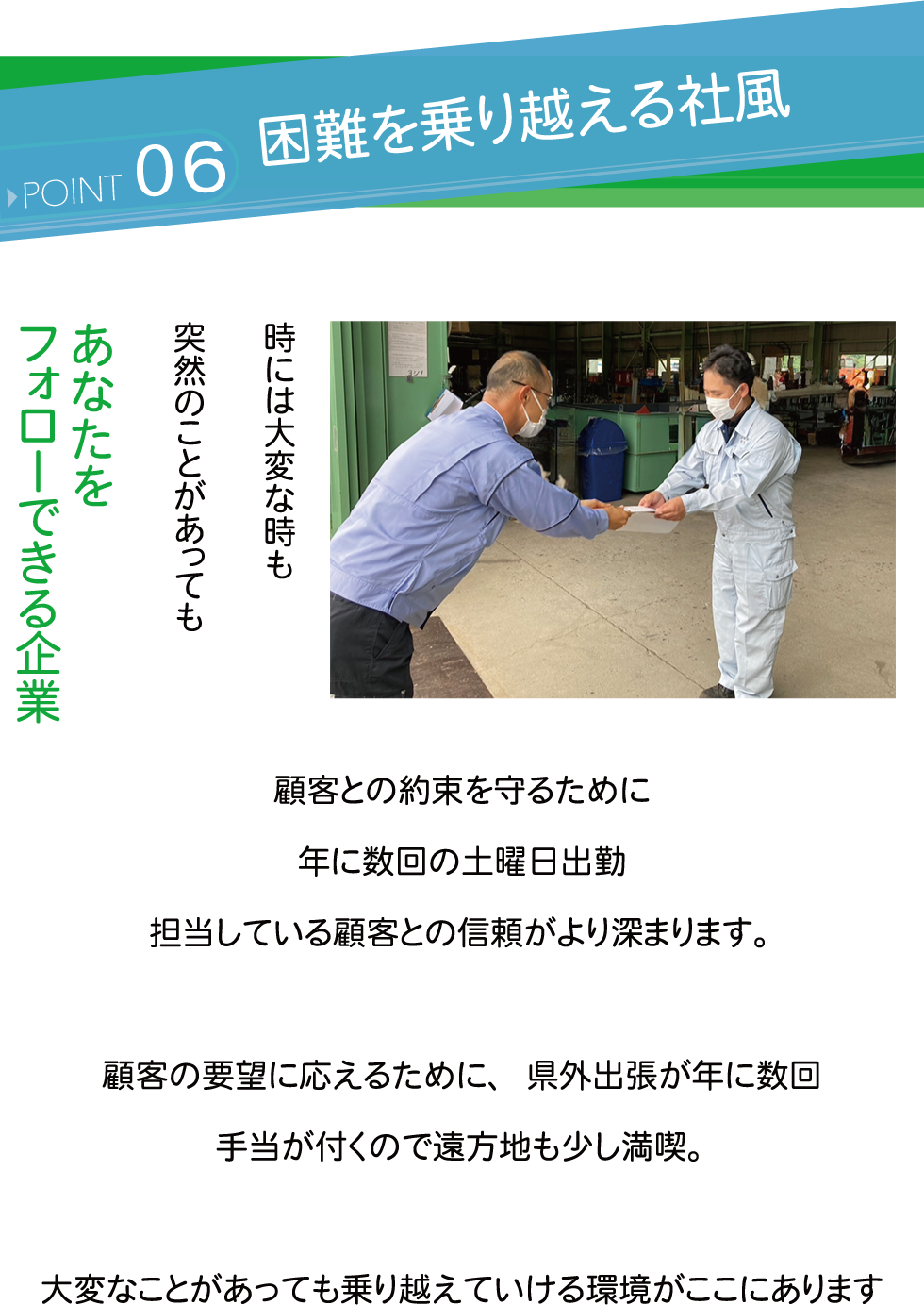 他府県への出張(数か月)もあります。